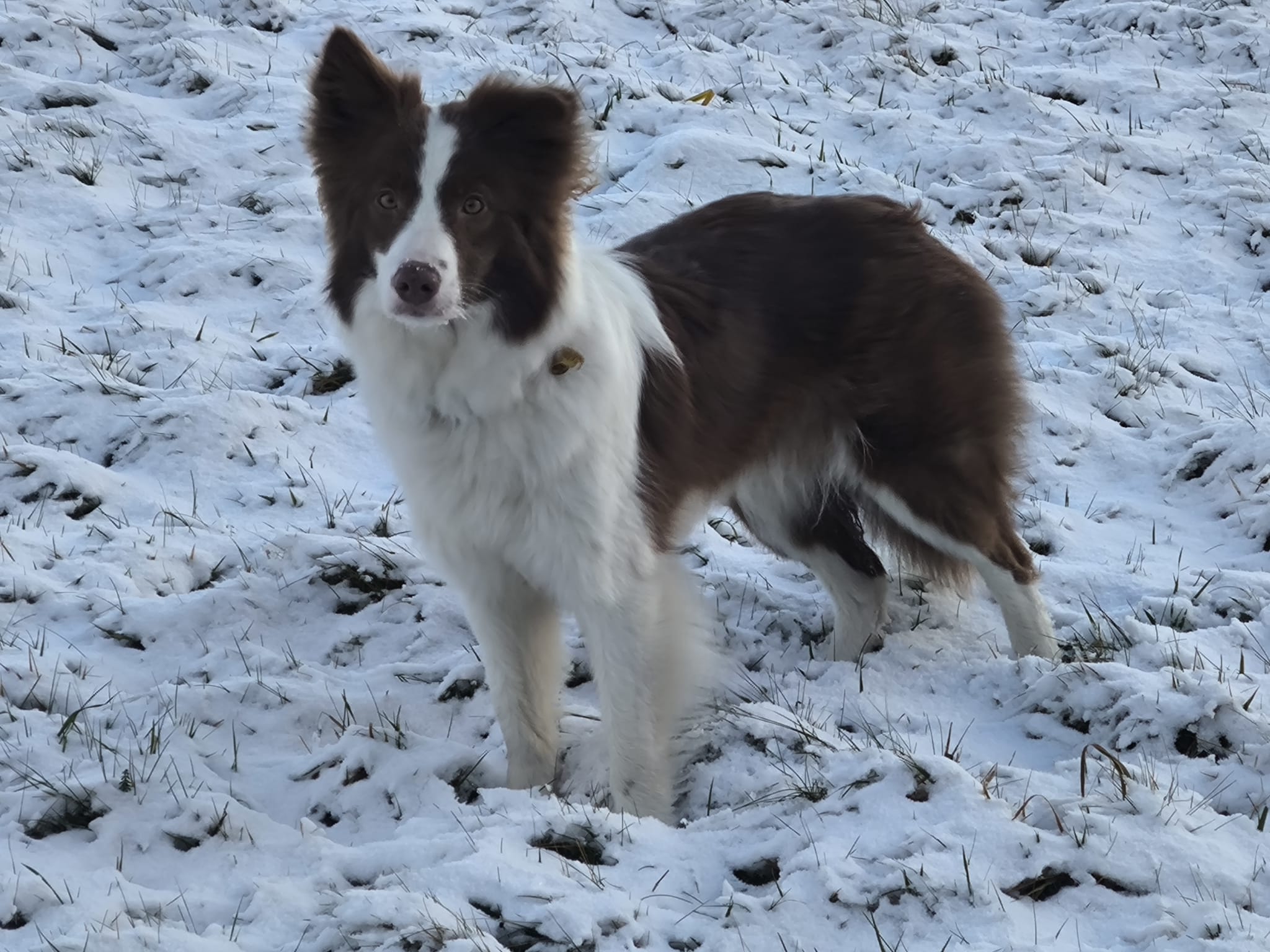 Draussen ist sie rasend schnell, drinnen eher ruhig. Sie treibt ihrer Mama Bonny zur Verzweiflung, weil sie ihr immer die Stöcke oder Bälle klaut (s. Bonny) und so schnell wegflitzt, dass sie kaum mehr zu kriegen ist. Dabei sind ihr die Bälle total egal, es ist nur so schön, wenn Bonny sich aufregt.
